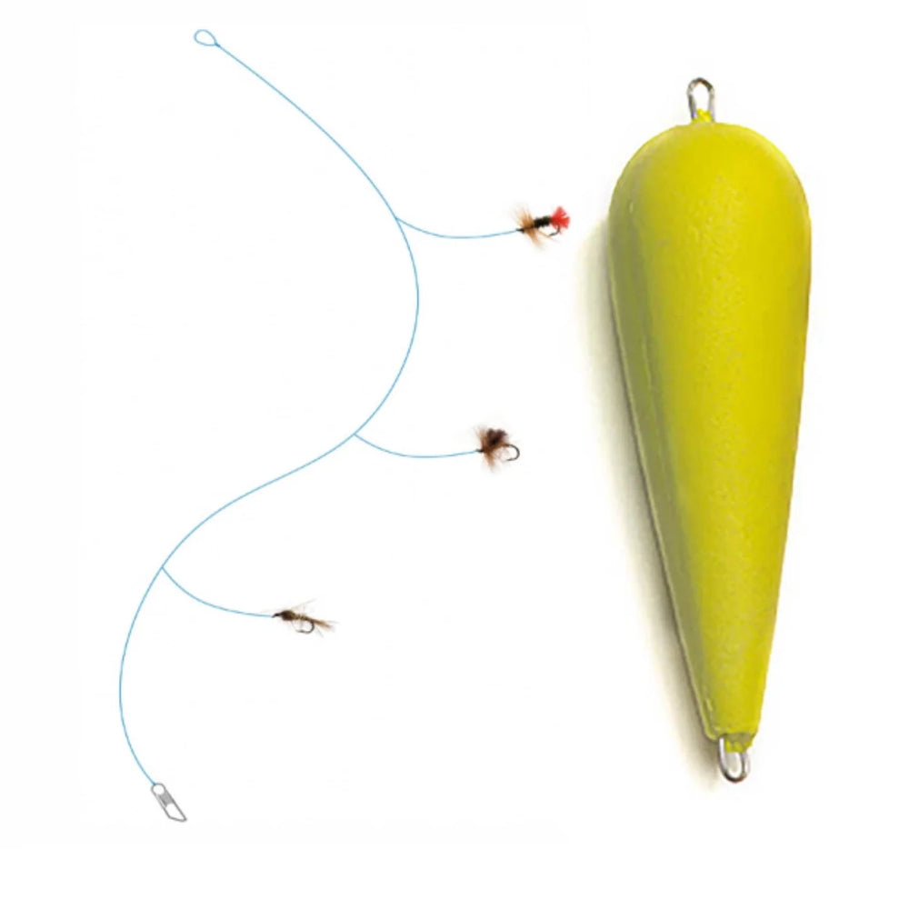 Gjør fluefiske tilgjengelig for alle med denne komplette pakken, perfekt for bruk med slukstang. Settet inkluderer en fluedupp og et ferdig knytt flueoppheng med opptil tre fluer, noe som tredobler sjansen for fangst.